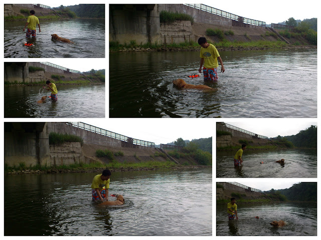 哈哈哈~~ 一直找不到丟下去的石頭的apple竟然潛起水耶!! ←爆氣了
